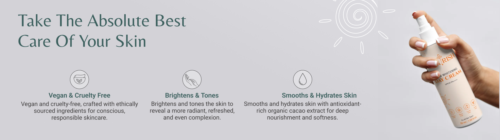 • “Step into the sunshine with confidence—this SPF 50++++ day cream brightens, hydrates, and protects your skin all at once, giving you that effortless everyday radiance.”